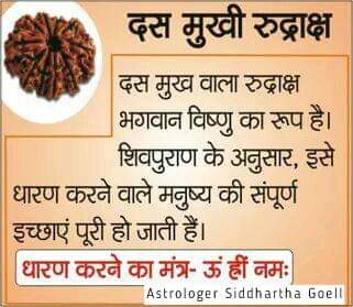 As per Shrimad Bhagavad, Ten Mukhi #Rudraksha is blessed by Maha Vishnu, the preserver of Universe. As per Rudraksha jabala upnishad, It is blessed by Yamraaj and Dash digpals, the controller of ten directions. Dash mahavidya, it is considered a very powerful Rudraksha.