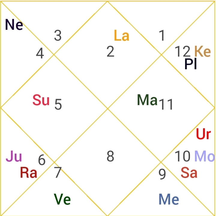 4. Mars aspecting fifth house of emotions, feelings of love. Jupiter and Rahu are placed in fifth house forming Guru Chandal yoga which is further worsened by aspect of Mars. Therefore, she got cheated and disheartened in love affair too. Second time she was raped by her boyfriend, to whom she confided and trusted.