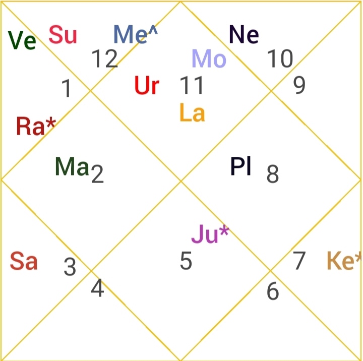 - Mars and Saturn are aspecting seventh house of horoscope where eleventh lord Jupiter is placed. Therefore, malefic influence on seventh house of Physical intimacy or Relationship with opposite Sex. Point to to be noted is why she was raped by her own uncle? Eleventh house is third from ninth house of father, which means younger brother of Father i.e Uncle. Lord of eleventh is Jupiter. Jupiter is aspecting Moon which is lord of sixth house of horoscope. Sixth house or lord signifies struggle, dispute or forceful activity. Hence, position, aspect of planets on Seventh house made this happened. But due to Jupiter Moon aspect, it was not reported and kept hidden. Nobody ever came to know about this episode.