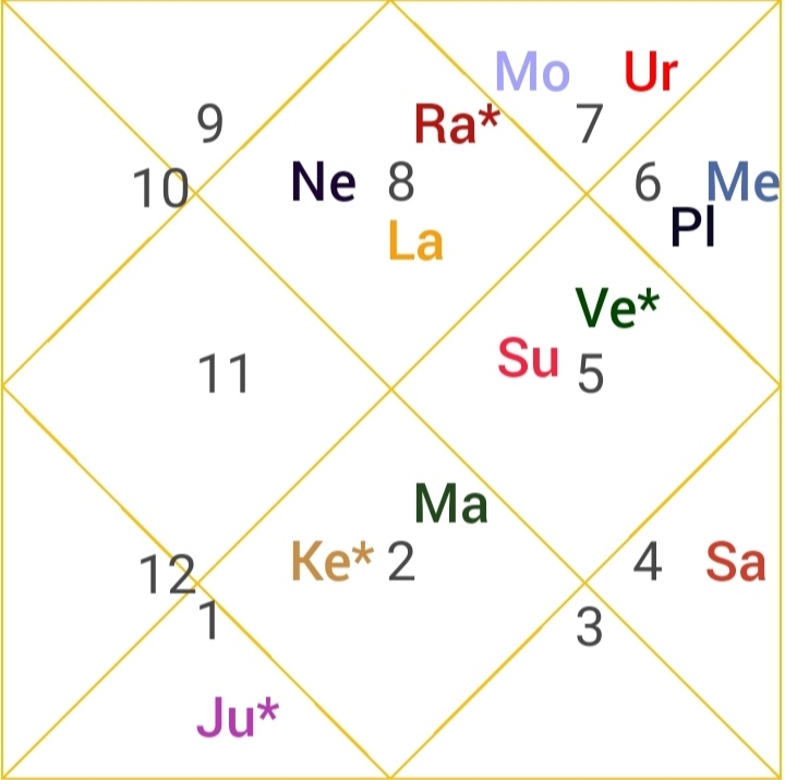 Now that recently Raj Kundra got arrested because it is Sun sub period in major period of Jupiter. Both planets are lordship of 6/8 Axis from each other, which indicates controversies.
