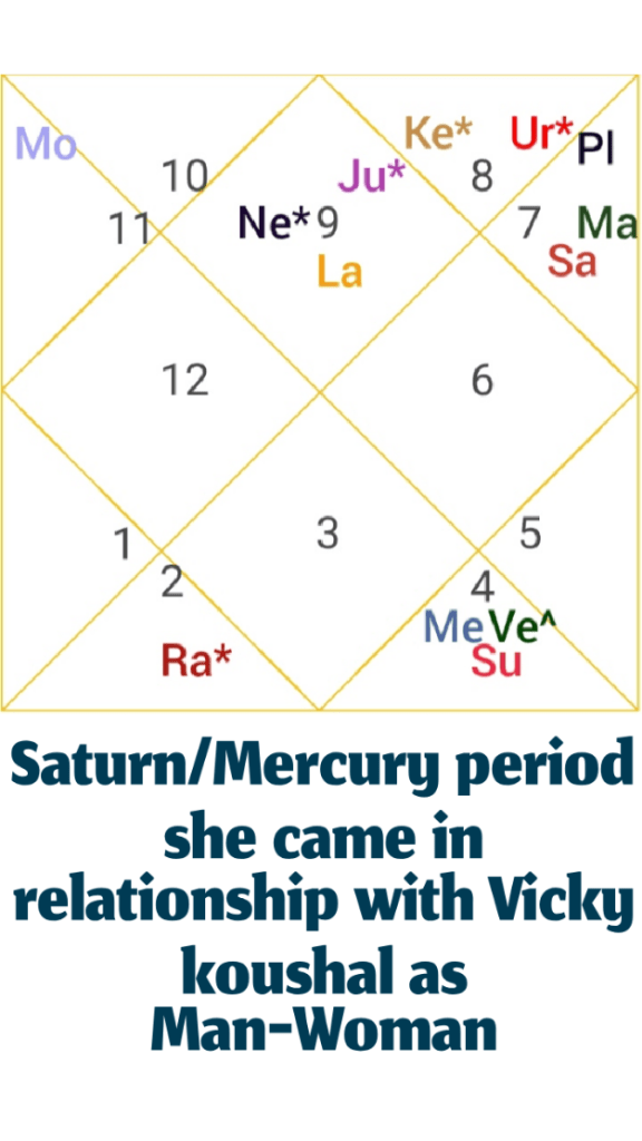 Katrina kaif relationship with Vicky kaushal started in her Saturn major period and Mercury sub period. Mercury is seventh lord of spouse and Lagna Lord of Navamsha therefore both formed a bond as a couple, explains Astrologer Siddhartha Goell