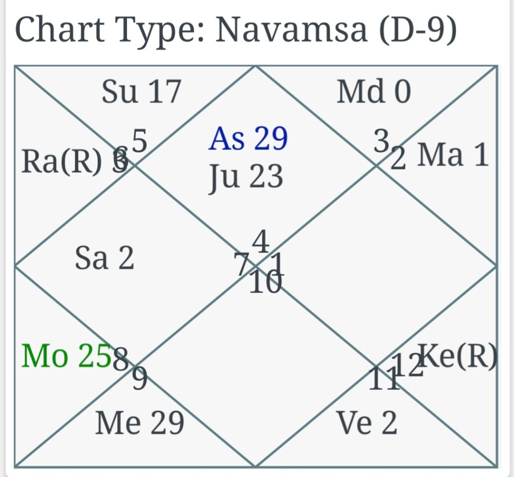 1. The ascendant Lord sun is in the eighth house. It’s sign lord Jupiter is in the ninth house, is in conjunction with the sixth and seventh Lord Saturn. Therefore, connection between seventh and eighth Lords.