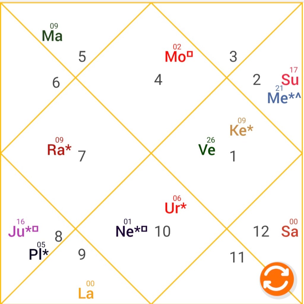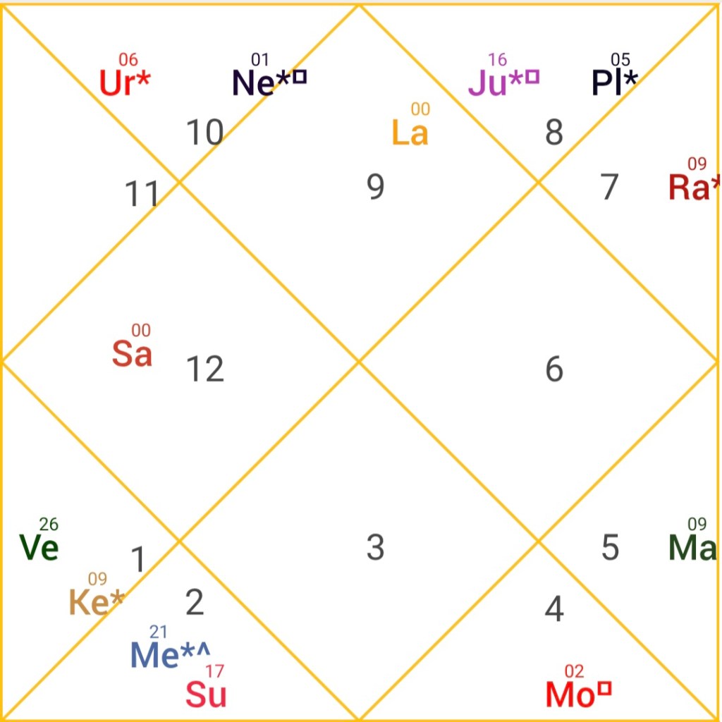 Venus, the planet of love, romance, and intimacy, is placed in the sign of Mars, which intensifies passion and physical desire. This configuration gave the native a strong inclination toward emotional and intimate involvement.