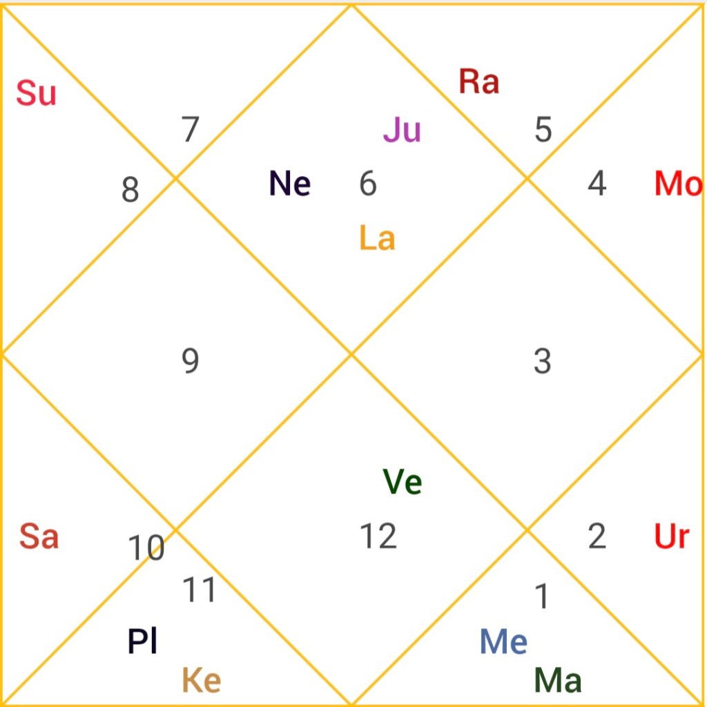 - Venus, exalted and aspecting the 9th house of second marriage, along with Jupiter’s influence, resulted in yet another marital bond.