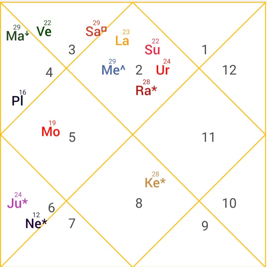 Sun’s depositor Moon, along with 11th lord Mercury, is conjunct Rahu in the 2nd house.