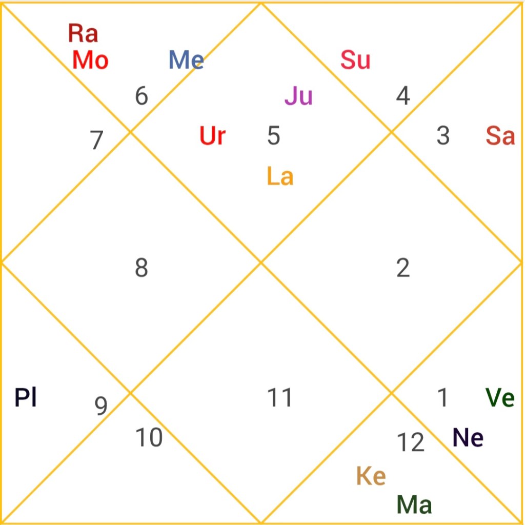 8th and 11th lord Jupiter, placed in an enemy sign, aspects the Ascendant—linking disease and acceleration.